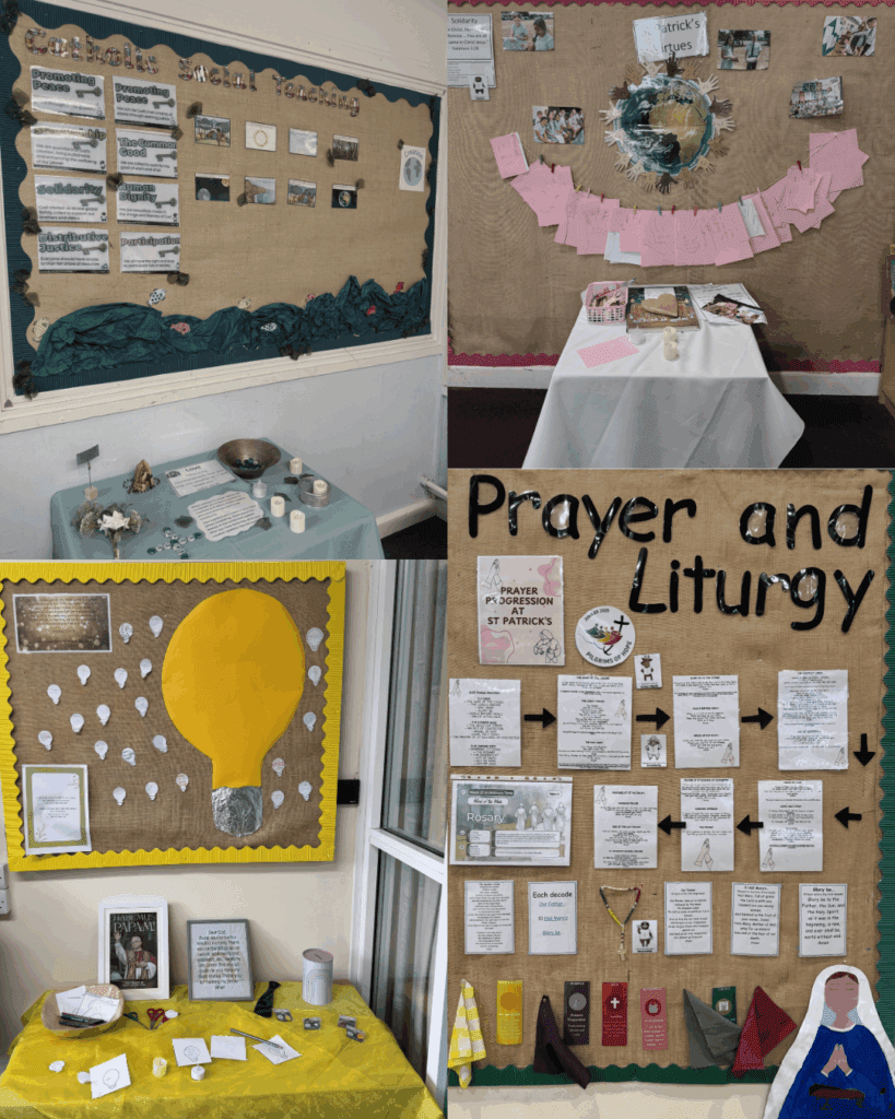 All classes participate in a daily act of collective worship. This may take the form of class prayers, liturgies or assemblies. This is also linked to the Word of the Week (WOW), which are an integral part of school life, and used by staff and pupils to promote and develop whole school and class-based collective worship in an innovative and reflective way.